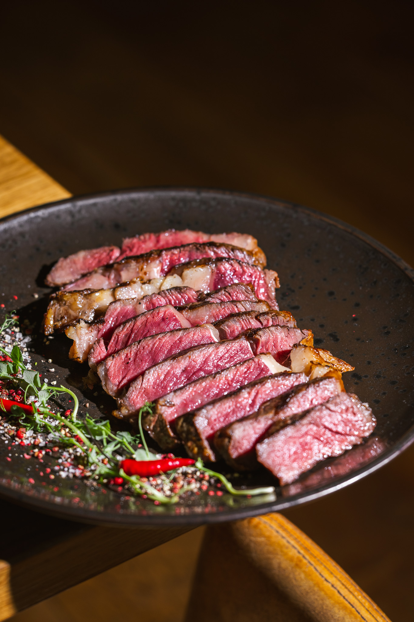 Nowocześnie i oryginalnie urządzone wnętrze wypełnione jest niepowtarzalną atmosferą. Steki przygotowane z najwyższej jakości sezonowanej wołowiny szlachetnej rasy Angus - soczystej, kruchej, delikatnej i aromatycznej. Burgery w zaskakujących kompozycjach, wyłącznie z mięsa wołowego, oryginalne i wyszukane dodatki oraz specjalnie wypiekana bułka. Wyłącznie świeże produkty, autorskie sosy, dbałość o szczegóły oraz profesjonalny serwis to znaki rozpoznawcze tego wyjątkowego miejsca.